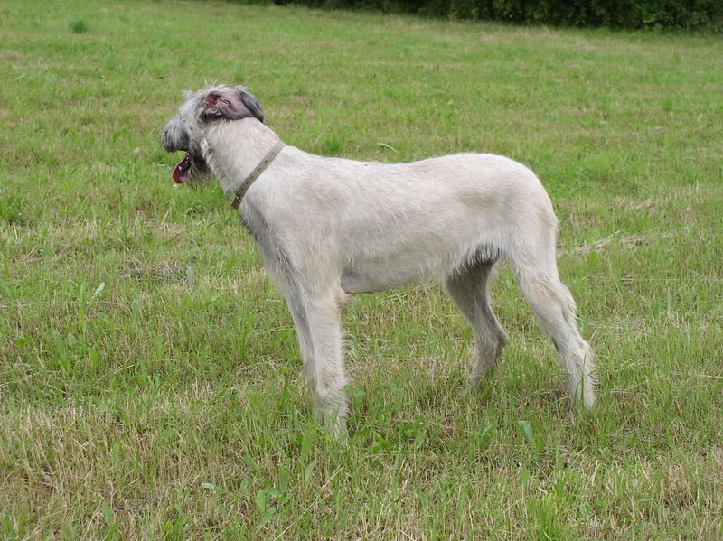 I opis Viki: „appealing youngster, with a sweet expression, dark eye, correct mouth, neat ears, medium length neck, well placed shoulder, straight up arm, straight pasterns, good depth of chest for the age, long in loin, sufficient rear angulation, shown in lean but good conditions, very well muscled, moves well”