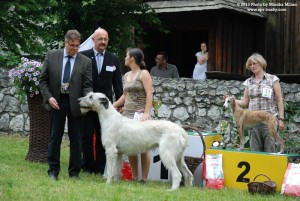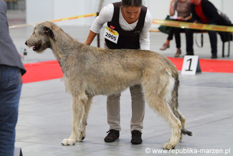 Varna wygrała w klasie otwartej i zdobyła Res. CACIB. OPis: bardzo dobry rodzaj, dobra głowa i wyraz, dobra szyja i linia górna, wystarczające przedpiersie, dobrze kątowana, silny kościec, swobodne i wydajne ruchy, dobra szata i temperament.
